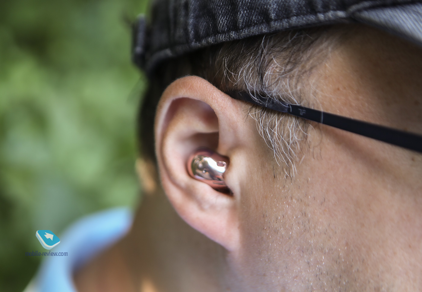 Придирчивый опрос пользователей Buds Live показал, что наушники подходят далеко не всем, есть люди, у кого они плохо фиксируются в ушах, но это скорее исключение. К сожалению, попробовать наушники до покупки невозможно, так заведено у всех производителей. Но вероятность проблем минимальна, обычно с первого раза непонятно, как правильно вставить наушники, но освоиться с этим можно быстро. При плотной посадке наушников вы получите звукоизоляцию, ухо начнет потеть, это неизбежно. Пот может вытолкнуть наушник при резком движении, он выскользнет. Чтобы этого не произошло, сделали отверстие для вентиляции, но оно также пропускает звуки (противоречивая задача - дать доступ воздуху, а значит, дать и внешние звуки). Но решили этот вопрос за счет системы шумоподавления, наушник спроектирован так, что при работе ANC внешний шум отсекается. Но и тут инженеры решили подойти прагматично к вопросу. Если в наушниках других производителей мы видим попытку отсечь все внешние шумы, то в Buds Live это только низкочастотный шум до 700 Гц. Тот самый шум транспорта, метро, города, работа вентиляторов и шум улицы. Зачем пытаться убрать все шумы, если можно только нивелировать действие раздражающего шума города? И этим Buds Live отличаются от других наушников, шумоподавление здесь работает деликатно. Вы, с одной стороны, в звуковом коконе, ощущение, что вокруг тихая комната, но слышите при этом голоса людей (они звучат непривычно, немного цифровые, нет нижних частот), клаксоны машин и так далее. Насколько это хорошо и отличает наушники от других моделей с шумоподавлением? Это особенность, которая кому-то понравится, а кто-то скажет, что это полная ерунда. Но за счет такой системы шумоподавления звук музыки в наушниках стал интереснее, басы насыщенные. Об этом поговорим отдельно, но они звучат заметно лучше, чем AirPods Pro, не так, как Buds+, звук другой.