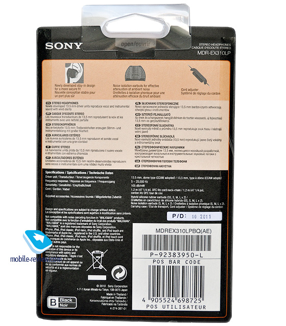 Обзор наушников Sony MDR-EX310LPКомплект поставки: