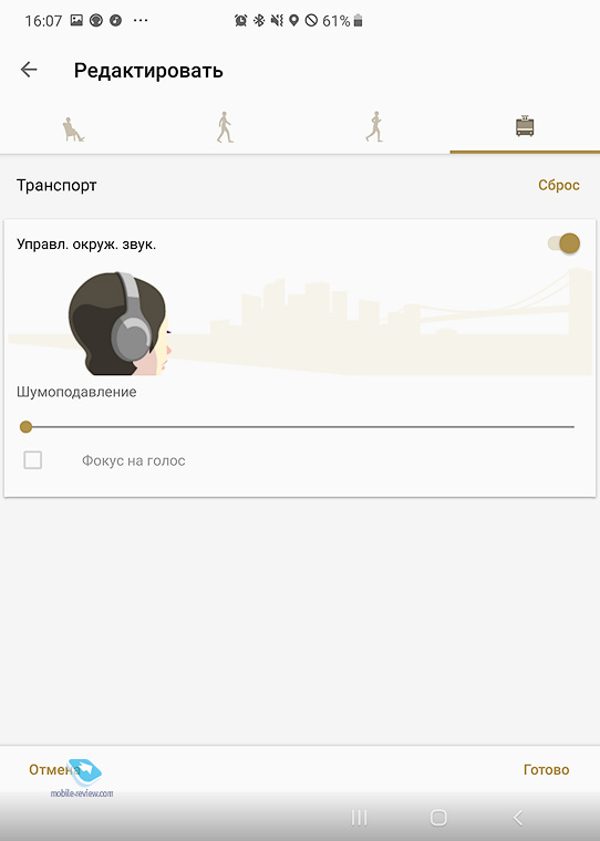 Время работы меня вполне устроило, около 30 часов с включенной функцией шумоподавления. Голосовые подсказки могут быть на любом языке, вы сами загружаете нужный. Также наушники проговаривают, сколько процентов заряда у них осталось. Про звук и шумоподавлениеНа коробке с наушниками написано, что у них экстра-бас, и это правда. Звук, который рисуют эти наушники, детальный в средних частотах, но бас максимально усилен, он забивает все и в какой-то мере корежит привычные композиции. Эти наушники просто обязательно нужно послушать перед тем, как покупать. Если у вас были недорогие наушники, то возможно, что звук в этих Sony вам приглянется. Частично исправить бас можно за счет эквалайзеров, картина становится более естественной. Шумоподавление реализовано иначе, чем во флагманских наушниках, оно скорее подойдет для города, нежели для полетов. В самолете внешние шумы остаются слышны и хорошо заметны. Но в городе наушники справляются со своей задачей намного лучше. Мне они показались аналогичными всем предыдущим поколениям наушников конкурентов с шумоподавлением. Примерно тот же уровень. Плюс есть адаптивное изменение настроек наушников в зависимости от внешнего шума (на сайте Sony указано, что этого нет, но в моих наушниках опция присутствует). У Sony есть фирменная технология улучшения цифрового звука DSEE HX, позволяет восстановить композиции при передаче по Bluetooth. Эта технология исправляет как огрехи mр3 (работает при подключении провода), так и огрехи сжатия при беспроводной передаче.