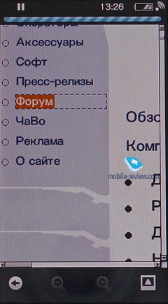 Интернет-браузерСтыдоба - вот то слово, которое я нашел для описания браузера в Sony Walkman X-1050. По-другому, простите, назвать это не получается. Используется NetFront Browser, знакомый многим по старым телефонам и смартфонам Sony Ericsson, был такой браузер и для Windows Mobile. Во времена браузера в iPhone и iPod Touch, во времена Opera Mini данное решение не то что выглядит смешно и архаично, оно выглядит как некая нелепая попытка установить в новейший плеер хоть что-то ради маркетинговых целей. Именно поэтому я просто перечислю некоторое количество багов и глюков, с которыми столкнулся, но на функциональности решения останавливаться не буду, она стандартна (закладки есть и все такое). Можете меня потом поругать, но что в 2009-ом году можно сказать о программе, которая делает такие вот вещи: