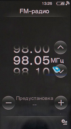 Так что, покупая X-1050, не особо надейтесь на сетевые возможности - вот основная мысль. Понимаю, в магазине вы вряд ли сможете проверить браузер самостоятельно, но если рядом будет точка доступа, то обязательно попросите консультанта подключить плеер, наберите адрес нашего сайта, и все вам станет понятно. И тут возникает вопрос: ну и зачем было городить огород? Зачем нужен этот довесок? Не лучше ли было оставить четко работающий здесь YouTube, а потом, договорившись с кем-нибудь, либо установить сюда ту же Opera, либо еще что? Нет, видимо, кому-то очень хотелось любой ценой сделать из X-1050 интернет-планшет. Не получилось, друзья. РадиоНаверное, самое простое радио в плеерах с сенсорным дисплеем, которое я видел за последнее время. Перед вами отображается список станций, их можно прокручивать одним движением большого пальца. В настройках можно включить автосохранение, в моем случае плеер нашел и сохранил 11 станций, дело было в центре города. Чего-то не очень много. Также можно выбрать чувствительность сканирования, "моно/авто" воспроизведение. То есть в зависимости от приема воспроизведение будет идти в моно- или в стереокачестве. Радио как радио, возможности записи нет, что не очень хорошо для модели за такую цену. Но зато запись есть в бюджетных плеерах Sony, так что вы можете в довесок прикупить какую-либо модель из серии B.