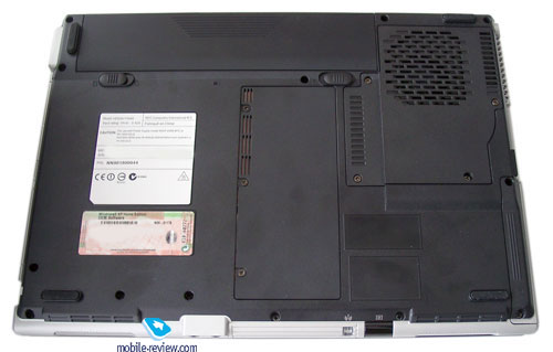 На нижней части ноутбука располагаются защелки аккумуляторной батареи,