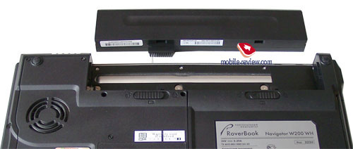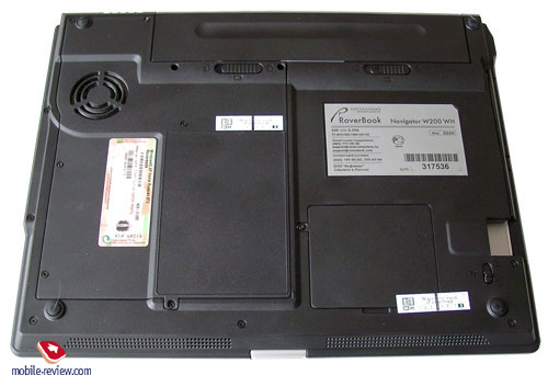 В нижней части модели W200 располагаются защелки батареи, вентиляционное