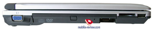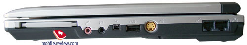 На правой боковой поверхности находится слот PCMCIA, выход для