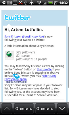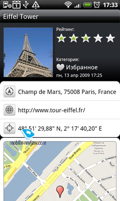 As in new HTC communicators on Windows Mobile this version of Sense for Android devices has "Etiquette" mode. Once activated the call volume goes minimal when you take the phone in hands during the incoming call. In some cases this feature may prove useful. For example, you participate in a meeting, the phone is on the table, and you have forgotten to set it into the silent mode. Then you hear a loud ringtone. Usually you have to take the phone and do something with it ![]() Phone bookSense has its own phone book different from Android 2.1. The contacts are displayed in the list; to the right we have a mini picture (contact's photo) and to the left – name and surname. The phonebook shows up to 30 symbols for name and surname (with spaces) with the resolution of 480x800. On the downside we should mention the impossibility to see the caller number right below its name. To achieve this you have to open the contact card and you can't customize the order in which name and surname are displayed. In the phone book it is possible to use the filter for the type of contacts, for example, show only the contacts with phone number or the ones you have as friends in Facebook. ![]() Here I want to issue one warning. If you have an active Facebook account with many friends who write to you regularly and answer back remember the following. "Smart" Sense without notification updates the information on contacts from Facebook and adds those who are not in contacts yet right after you add Facebook account … ![]() On the one hand it can be useful and convenient, but … If you have pictures added to many contacts (which is the case with me) after the synchronization with Facebook they will be substituted by the pics from this social network, which may not be universally applauded. Contacts can be scrolled in the right side and the top part of the screen will feature the current letter. If you set the Russian language the letters will only be in the Cyrillic alphabet, which is a bit of a disadvantage.