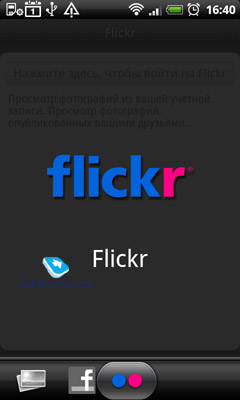 One and the same application is used for both photo and video. The content is presented in three categories: photo and video, as well Facebook or Flickr data if you have the corresponding accounts. Everything is organized into folders but one can also browse through all images (pictures, photographs, etc.) at once. In that case, the date of a photograph or picture will be displayed at the top of the screen with the more recent located down the list.
