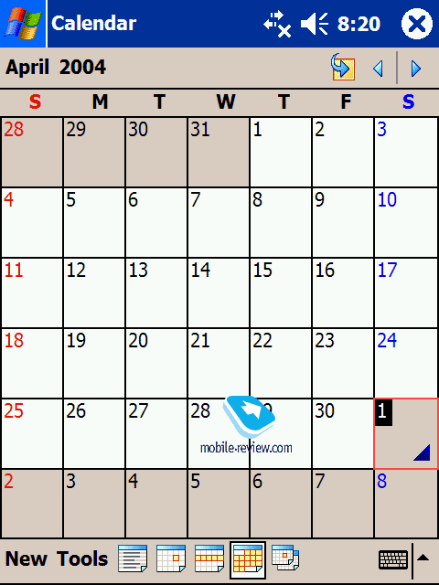 Наконец-то появилась возможность регулировать размер шрифтов, это особенно актуально для VGA КПК и смартфонов с маленькой диагональю экрана. Ломать глаза из-за мелкости шрифтов (как это было на Toshiba e800 в VGA-режиме под управлением WM2003) не придется. Пожалуй, это все основные изменения, можно переходить к обзору программного обеспечения. Встроенные программы в новой версии WM не изменились по сравнению с WM2003 (обзор доступен тут). Только лишь перерисованы иконки под высокое разрешение, шрифты более гладкие. Концептуально программы не изменились, они не используют весь потенциал VGA разрешения. Планировщик (PIM)