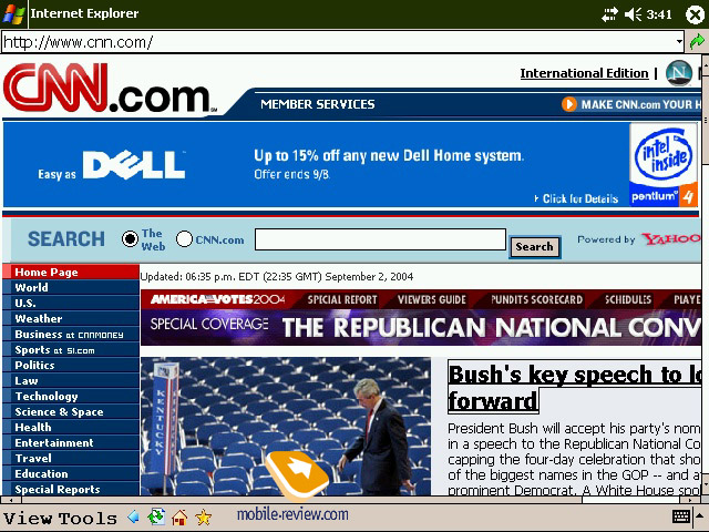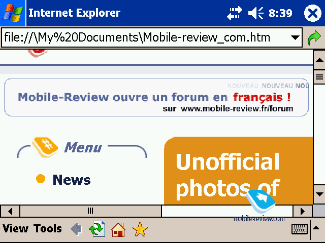 Неприятным сюрпризом в новой версии операционной системы явилась работа встроенного браузера. Небольшие графические изображения растягиваются в четыре раза, фактически странички отображаются как в разрешении 320x240 точек. От чего теряются преимущества высокого разрешения при Web-серфинге. Видимо, в компании Microsoft посчитали, что иначе Web-странички будут выглядеть мелко. При помощи программы SE_VGA эта проблема полностью решается, иконки и шрифты становятся мелкими, но странички отображаются корректно, почти как на настольном компьютере. Например, так выглядят на VGA-экране КПК некоторые Интернет-странички: