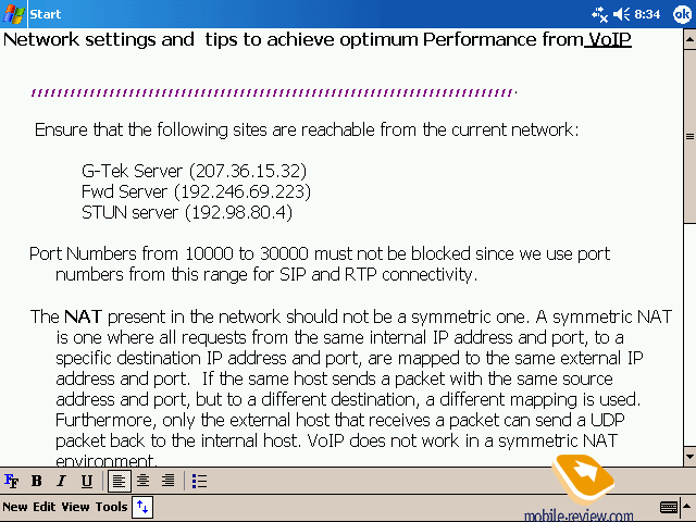Вторая офисная программа, входящая в комплект WM2003SE – это Pocket Word. Минусы: отсутствие поддержки таблиц и графики в тексте. Основные плюсы: поддержка русского языка, работа с документами MS Word без их предварительного конвертирования. Программа SE_VGA может быть полезна и в офисных приложениях, а не только для просмотра Интернет-сайтов. При этом на экран помещается больше полезной информации: