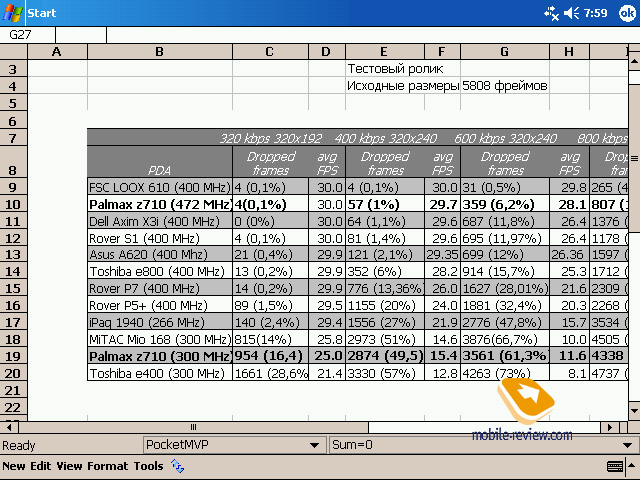 Естественно, в WM2003SE встроены офисные приложения Microsoft, среди них – Pocket Excel. Настольный Excel – это мощный инструмент для работы с электронными таблицами. Его карманная версия сильно уступает ему по функциональности. Например – нет поддержки диаграмм и объединенных ячеек. Очевидный плюс, который во многом перекрывает минусы – это корректная работа с русским языком.