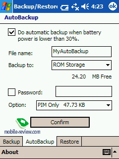 Backup/Restore. Утилита для резервного копирования данных. Крайне простая функционально, но основную задачу выполняет. Плюс программы – автоматическое копирование данных при низком заряде батареи.