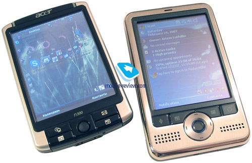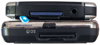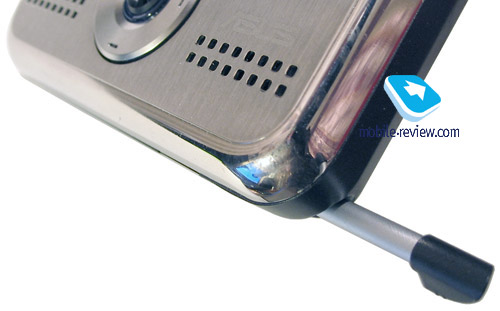 The left spine plays host to a Mini-USB slot which serves for linking up the PDA with PC or charging up the handheld. The slot is left uncovered. The right-hand side houses two elements: hold switch and 3.5mm audio jack. The elements mentioned, placed both on the spines and on the edges, are placed flush with the casing, which is a reasonable approach as all the three devices of the new line feature identical shells and in view of GPS-module embedded in the senior models they all are supposed to be used in car. That is why the casing is made flat with no protruding parts.