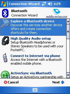 The device carries Bluetooth 2.0 module with EDR support onboard. The PDA comes installed with Broadcom (Widcom) drives, which is a good thing, as many latest-and-greatest PDAs are preloaded with Microsoft’s software, whose functionality is limited The number of profiles supported can make unprepared user tremble. The A626 contains all necessary profiles including A2DP (stereo sound to Bluetooth-headset).