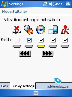 Review of Windows Mobile 5.0 for Pocket PC >>> Review of AKU update packs for Windows Mobile 5.0>>> Now let us turn to the suite of applications pre-installed on the PDA, which is not big, to be honest. As most of other manufactures, Asus has decided not to modify what the OS already brings to the table with additions of their own. Mode Switcher – is a small app that proved to be of great help in practice. In fact, it does the same job as ALT+TAB combination on your desktop. If you remember, such combination is used to bring up menu to switch between active applications or programs. In Asus A626 everything is done in pretty much the same way with two modes at your disposal – active applications or system programs and options. The former allows you to browse launched applications, while with the latter, you will be able to go back to Today screen, start up Windows Media Player and rotate the display.