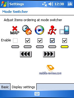 The PDA productivity (with the speed up) will be enough to cope with any task. The results of real tests suggest that this is one of the best Pocket PC. SoftwareThe handheld is powered by the 5th version of Windows Mobile. You can read about its standard applications in the special review published on out site (remember that the version for Asus MyPal A636 doesn't have specific phone applications, the PDA can't be used as the phone), here we just mention non-standard programs: Mode Switcher/ Task Switcher. It switches between active applications, like Alt+Tab combination on the keyboard.