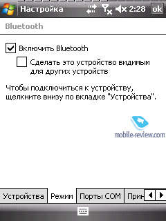 ![]() Встроенный модуль Bluetooth 2.0+EDR. В аппарате используются драйвера от Microsoft. Функциональность этого стека знакома нам по множеству других коммуникаторов. Рассмотрим поддерживаемые устройством профили и их назначение.