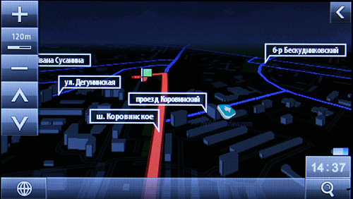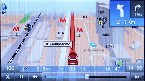 ![]() Дизайн, элементы управленияПо форме корпуса BBK N5026 ничем не отличается от большинства других пятидюймовых навигаторов, зато подбор материалов в данной модели более интересный. Конечно, обыкновенный гладкий пластик черного цвета на ребрах, торцах и задней стороне малопримечателен, но рамка вокруг экрана в N5026 выполнена из металла. Такой ход с металлический рамкой выделяет модель на фоне полностью пластиковых конкурентов, согласитесь, на рынке не так много навигаторов, в конструкции которых используется металл в каком-то виде. ![]() За счет металлической рамки устройство выглядит дороже, чем есть на самом деле, в остальном дизайн модели я не могу назвать оригинальным или выдающимся, типичный навигатор, внешний вид которого можно назвать спокойным и универсальным. ![]() На лицевой стороне слева сверху находится световой индикатор, который горит красным во время зарядки или питания навигатора от автомобильного прикуривателя. На левом ребре расположены разъемы miniUSB для зарядки и подключения к ПК, а также 3,5 мм миниджек и слот для карты памяти формата microSD. В комплекте карты памяти нет, навигационное ПО предустановлено во внутреннюю память устройства. ![]() ![]() В правой нижней части корпуса находится пенал для стилуса. Перо телескопическое, удобное. Впрочем, использовать его особого смысла нет. Экран хорошо реагирует на нажатия пальцем, интерфейс навигационной программы и меню также «заточен» под управление пальцами, без использования стилуса. ![]() ![]() ГабаритыПо размерам BBK N5026 ничем не отличается от других навигаторов с экраном диагональю 5". Габариты модели составляют 137,6x86x13,2 мм, вес 202 грамма. Навигатор автомобильный, конечно, при желании его можно использовать и в качестве пешеходного, но вес и габариты все же велики. ![]() ![]() ЭкранВ навигаторе установлен TFT-дисплей с разрешением 480x272 точки. Диагональ экрана составляет 5" (111x62 мм). По характеристикам дисплей совершенно стандартный: хорошие углы обзора по горизонтали, минимальные по вертикали (искажения даже при небольшом отклонении экрана от себя). Экран с матовым покрытием, за счет которого дисплей не так сильно слепнет на солнце, но картинка более тусклая, чем на экране без такого покрытия. Запас яркости в дисплее не слишком большой, максимальная яркость как раз комфортна для повседневного использования. На мой взгляд, летом, при ярком солнце, будет желание «выкрутить» ее повыше. Использование в автомобиле, автомобильное креплениеДля установки в автомобиле в комплекте навигатора предусмотрено классическое крепление: автодержатель и кронштейн. Крепление относительно компактное и простое в регулировке. Изменять положение навигатора в уже закрепленном виде удобно, для этого достаточно ослабить единственную «гайку» на кронштейне, и после этого можно свободно вращать навигатор. Устанавливаем требуемое положение и снова фиксируем крепление. ![]() ![]() ![]() ![]() Кронштейн можно закрепить в автомобиле и больше не вынимать. Сам навигатор вынимается из крепления без особых усилий. ![]() ![]() Автономная работаВ аппарате установлен несъемный аккумулятор емкостью 1500 мАч. Производитель заявляет до 3 часов работы, показатель очень близкий к реальности. Мы провели стандартный тест на время работы, используя навигатор в автомобиле. Устройство тестировалось на максимальном уровне подсветки (экран