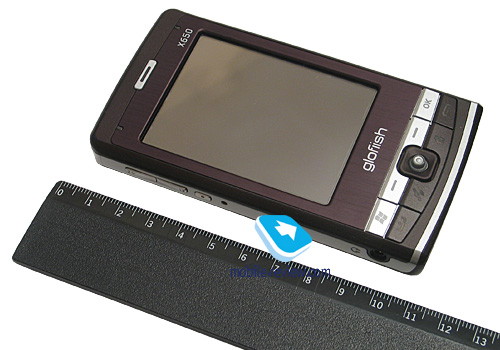 По габаритам модель находится между компактными решениями: HTC Touch, Touch Dual, Samsung i710. При этом и X650 можно назвать компактным, он удобно лежит в руке и без проблем помещается в любых карманах. ![]() ![]() Модель, как и Glofiish X600, разрабатывается полностью внутри компании, включая сборку, которой раньше занимались ODM-партнеры E-Ten. Сборка не вызывает нареканий, все элементы плотно подогнаны, скрипов и люфта корпуса нет. Единственный замеченный недостаток, как и в случае Glofiish X600, – не слишком надежное крепление задней крышки, в нашем случае один край крышки неплотно прилегал к верхней половинке корпуса. ![]() Даже если крышка сойдет с пазов, она не выпадет: стилус крепится таким образом, что удерживает крышку. Элементы управленияЭргономика Glofiish X650 полностью идентична X600, если вы читали обзор предыдущей модели, то не обнаружите здесь ничего нового. В верхней части корпуса, над дисплеем, находится разговорный динамик. Он заключен в декоративную вставку из пластика серого цвета. Чуть поодаль от динамика мы видим с двух сторон светодиоды. Их назначение традиционно для моделей от E-Ten. Левый мигает синим при работе Bluetooth, оранжевым – при активации и работе Wi-Fi, а также белым при включении GPS-навигации. Правый горит красным при подключении к ПК, зарядке устройства или мигает при пропущенных событиях. Оба светодиода яркие, так что увидеть их индикацию можно даже в солнечный день. ![]() На левом ребре располагается сдвоенная клавиша регулировки громкости и кнопка, активирующая голосовые заметки (можно переназначить). На клавише регулировки громкости есть небольшие выступы (риски), чтобы кнопки было легче нащупать, и сами окончания клавиши немного приподняты над корпусом для этой же цели. В нижней части ребра расположен 2.5 мм разъем для подключения гарнитуры и утопленная в корпус кнопка мягкой перезагрузки устройства. ![]() ![]() Клавиша питания (удерживание выключает подсветку) и двухпозиционная кнопка активации камеры распложены на правом ребре. Кнопка питания находится на одном уровне с поверхностью корпуса, кнопка включения камеры немного возвышается над корпусом. ![]() ![]() На нижнем торце мы видим разъем miniUSB для подключения кабеля или зарядного устройства. Здесь же расположен слот под карту памяти формата microSD. В последних прошивках аппарата появилась поддержка формата SD 2.0, то есть карт памяти объемом более 4 Гб. На данный момент эта поддержка есть во всех официальных прошивках, начиная с 257. Возле разъема под карту памяти виден микрофон. ![]() ![]() В углу торца располагается разъем для стилуса. Чтобы вынуть перо, его необходимо поддеть ногтем или чем-то острым. Просто провести пальцем, чтобы его достать, не удастся: наконечник стилуса имеет несколько выступающих зубцов, но они слишком небольшие. ![]() ![]() Перо телескопическое и очень напоминает таковое в X500, X500+. Оно в меру толстое и длинное в разложенном состоянии. Будет удобно большинству пользователей, кто-то привыкнет к короткому варианту, кто-то остановится на длинном. ![]() ![]() ![]() На верхнем торце всего один элемент – ушко для крепления шнурка. Расположение его в верхней части спорно в том случае, если вы планируете использовать крепление с ремешком на руку. Для коротких ремешков такое крепление не подойдет. С другой стороны, сам факт наличия этого крепления дает надежду, что в будущем компания сменит его располож
