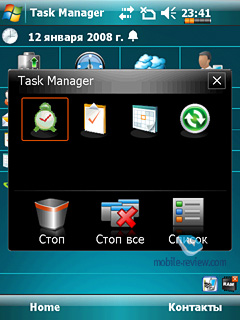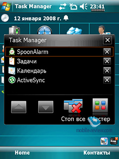 ![]() Bluetooth Manager – утилита для работы с Bluetooth-модулем. Отличается от стандартных параметров Bluetooth множеством настроек и более понятным интерфейсом. ![]() Task Manager – новое приложение, которое во многом повторяет программу от HTC, только в другой реализации. С помощью менеджера задач вы можете просматривать все запущенные программы в виде значков или списка, а также закрывать выбранные приложения или все сразу. Интересно сделана анимация закрытия программ в режиме значков. Вы выбираете программу, которую хотите закрыть, и перетаскиваете ее в корзину, после чего она с характерным звуком и анимацией сгорает в корзине.