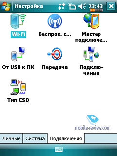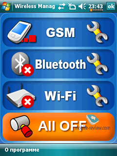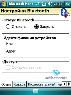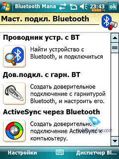 Скорость работы камеры невысока, в этом плане аппарат проигрывает продуктам Asus, HTC. Между моментом нажатия кнопки съемки и готовым кадром проходит больше 9-10 секунд, если же при этом еще ждать фокусировки, то время увеличивается до 13-15 секунд. Для сравнения: аналогичная операция в Asus P525 с фокусировкой занимает в среднем 4-5 секунд. Минимальное время готовности камеры к следующему снимку составляет примерно 15 секунд. Видео записывается в формате 3gp c разрешением 320x240, 176x144 или 128x96. Настройки в режиме видео повторяют настройки в режиме фото. Из особенностей отметим: включение/отключение записи звука, выбор качества видео – высокое, среднее и низкое. Для видео доступно масштабирование, но работает оно только до момента начала съемки (во время съемки можно менять масштаб, но фактически при записи функция не работает, меняется лишь обозначение масштаба в меню съемки). Качество и разрешение записанного видео в Glofiish X650 удручает и ничем не отличается от предыдущих моделей: несмотря на то, что картинка в целом смотрится четко, звук дрожит или просто пропадает каждые 2-3 секунды, например, разобрать речь в ролике невозможно, изображение также периодически подвисает или останавливается, сказывается небольшая скорость записи (количество кадров в секунду). ИнтерфейсыСотовый модуль коммуникатора поддерживает стандарт GSM (GSM 850/900/1800/1900) и технологию EDGE. Аппарат также имеет Bluetooth- и Wi-Fi-модули. ![]() Для подключения кабеля синхронизации и зарядного устройства используется разъем miniUSB, для гарнитуры – типичный для коммуникаторов 2.5 мм разъем на боковом ребре. Для работы с беспроводными интерфейсами используется фирменная утилита от E-Ten – Wireless Manager. Программа имеет простой интерфейс и удобна в работе. В левой части приложения происходит запуск или отключение беспроводных модулей, а в правой – их настройка. ![]() Bluetooth 2.0 + EDR, количество профилей стандартное для новых моделей компании. E-Ten использует доработанный стек от Microsoft. Изменения касаются как функциональной части, так и оболочки для настройки и работы с Bluetooth. Посмотрим, какие профили реализованы в коммуникаторе X650:
