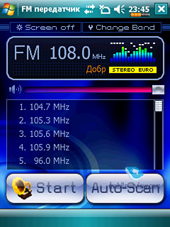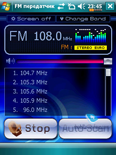 Для работы радио требуется подключенная гарнитура, она исполняет роль антенны. Недостаток заключается в том, что радио нельзя вывести на внешний динамик, вещание будет идти только в гарнитуру или наушники. FM-передатчик (FM Transmitter) – помимо VGA-экрана и увеличенной частоты процессора эта программа – еще одно отличие X650 от X600. Если сказать кратко, то с помощью FM-передатчика можно выводить любой звук с коммуникатора (разговор, музыка) на определенную, заданную вами частоту. Выглядит это примерно так: Вы подключаете к Glofiish X650 гарнитуру (FM-передатчик работает только в этом случае) и включаете функцию FM Transmitter, предварительно указав в программе рабочую частоту. После включения передатчика утилиты можно отправить в фоновый режим. После этого на другом устройстве (автомагнитола, плеер) приемник настраивается на выбранную вами в передатчике частоту, и вы слышите музыку или фильм, если они в данный момент проигрываются на коммуникаторе. Если вам звонит человек, и вы отвечаете, то также сможете слышать его голос через автомагнитолу или плеер.