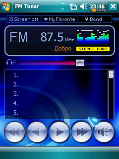 ![]() Теоретически можно использовать эту функцию в автомобиле, например, включая на коммуникаторе любимую музыку и транслируя ее на какую-то частоту. На практике FM-передатчик пока что работает не лучшим образом, у нас при тестировании возникли некоторые проблемы. Во-первых, возможны ситуации, когда с помощью функции автоматического поиска свободных частот не удается найти частоту, на которой передатчик работает без проблем. В таком случае можно воспользоваться ручным выбором частоты. Во-вторых, расстояние, на котором частота принимается другим устройством, очень небольшое, в нашем случае уже при удалении приемника от передатчика (X650) более чем на полтора-два метра сигнал резко ухудшался, возникали помехи. Ну, а в-третьих, качество звука, принимаемого на другом устройстве, даже при соблюдении двух вышеперечисленных условий остается невысоким, на уровне приема любой радиостанции или даже чуть ниже. Но не стоит думать, что из-за перечисленных недостатков FM-передатчик – вещь бесполезная. Стоит принимать во внимание, что это первый опыт компании, да и вообще первое мобильное устройство (среди телефонов, смартфонов и коммуникаторов, поправьте меня в форуме, если что-то забыл), обладающее такой функцией. Еще один важный момент – FM-передатчик наиболее логично использовать в автомобиле. Эта функция будет интересна автомобилистам больше, чем какой-то другой группе пользователей. Если компания E-Ten сможет в будущих моделях улучшить и развить идею FM-передатчика, то коммуникаторы Glofiish как минимум не станут хуже, но приобретут интересную функцию. Пока же говорить о пользе FM-передатчика рано в силу того, что функция только испытывается. Для прослушивания музыки в WM традиционно используется плеер Windows Media Player. Качество звучания при использовании сторонних наушников (в нашем случае это наушники-вкладыши Sony MDR ED31) находится на среднем уровне, по этому параметру модель не отличается от других аппаратов компании. Если вы нетребовательны к качеству звучания, то роль музыкального проигрывателя X650 будет исполнять исправно. Программное обеспечениеО базовых возможностях операционной системы Windows Mobile 6 Professional вы сможете прочесть в соответствующем обзоре, а здесь попробуем оценить дополнительный набор программ.