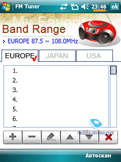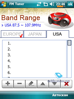В стандартном наборе вместе с аппаратом также поставляется комплект автомобильного крепления. МультимедиаFM-радио – для прослушивания радио используется приложение FM tuner. Диапазон допустимых частот для программ впечатляет. Всего присутствует три вкладки-диапазона: Europe (87.5 – 108.0), Japan (76.0 – 90.0) и USA (87.5 – 107.9). В каждой вкладке можно сохранить до 50 радиостанций с возможностью редактирования. Для радио доступна функция отключения экрана, при этом трансляция с радиостанции будет продолжаться.