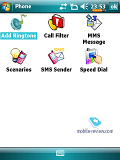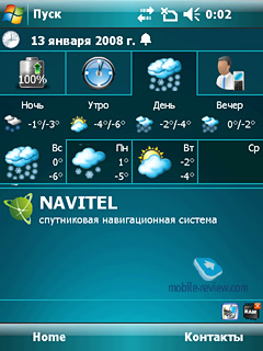 Помимо перечисленных приложений, которые разработаны E-Ten, в коммуникаторе установлена сокращенная версия программы SPB Mobile Shell. В ней нет экрана ожидания (часы) и утилиты для работы с контактами. Большинство других возможностей сохранено.