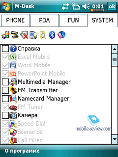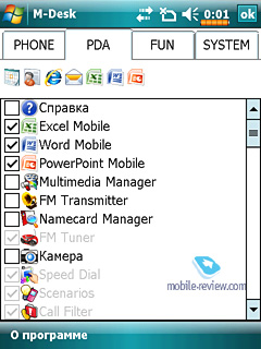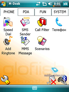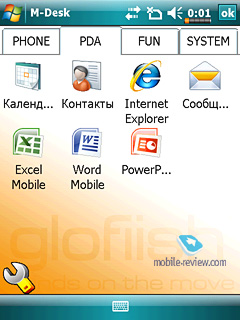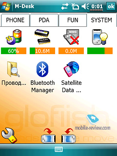 M-desk – Приложение служит для замены стандартного экрана «Сегодня». По сравнению с X500 и X500+ в новых моделях эта программа получила надстройку. Если раньше отдельной аппаратной клавишей M-Desk вызвался сразу, то теперь при нажатии клавиши с вызовом M-Desk запускается небольшая утилита с доступом к 9 программам. Эта утилита удобна в работе, если вы действительно используете собранные в ней программы часто.