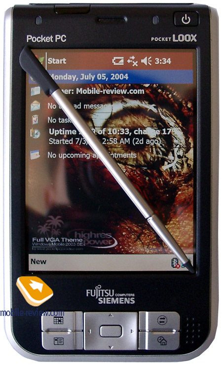 Almost 10 months have passed since the release of the first Pocket PC with a VGA screen. The appearance of Toshiba e800 proved to be a turning point in the development of Pocket PC. However a mass release of Pocket PCs with VGA screens is outlined only now. In the upcoming months or weeks there will be offered for sale five such Pocket PCs (not counting various modifications) at a time: Asus A730, Fujitsu Siemens Pocket LOOX 720, Toshiba e830, HP iPaq hx4700, Dell Axim X50. Each model is interesting in its own way. Not long ago we’ve written about Asus A730, today we are testing a handheld computer Fujitsu Siemens Pocket LOOX 720. The tests of other VGA-Pocket PCs will be available as these handhelds appear in our test laboratory. The first Pocket PC by Fujitsu Siemens, the LOOX 600, was one of the best Pocket PC in 2002, it enjoyed high sales. A year after, i.e. in 2003, the company launched the Pocket LOOX 610, which was a full copy of Asus A716. The model turned to be a specific one. Featuring good specifications it had a “brick” size, external antenna, difficult implementation of wireless adapters and was overpriced. For example, the modification LOOX 610 without Wi-Fi lost to HP iPaq model in most characteristics. The users of the first handheld in the series were disappointed. A whole year passed by, and we see that Fujitsu Siemens has introduced a very strong line. The company extended the model line with several budget handhelds: Pocket LOOX 410 and 420. The new “top” Pocket LOOX 700 series include two models. The LOOX 720 succeeds to FS Pocket LOOX 600. It seems to rival with HP iPaq 4700 for the award the best Pocket PC of this year. The junior model Pocket LOOX 710 represents a simplified version of the Pocket LOOX 720: it lacks the camera and comes with twice as less RAM, less frequency rate, QVGA screen instead of VGA. Both models together with HP iPaq 4700 and Dell Axim X50 modifications are developed and manufactured by the Taiwanese company HTC (the project name of the LOOX 720 is HTC Bali). By the way, HTC is a hardware platform development partner of Microsoft; no wonder that most Pocket PCs are made at the plants of this company.