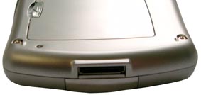 Два слота для карт памяти расположены сверху, что свойственно для большинства КПК. Там же расположено гнездо наушников, микрофон.