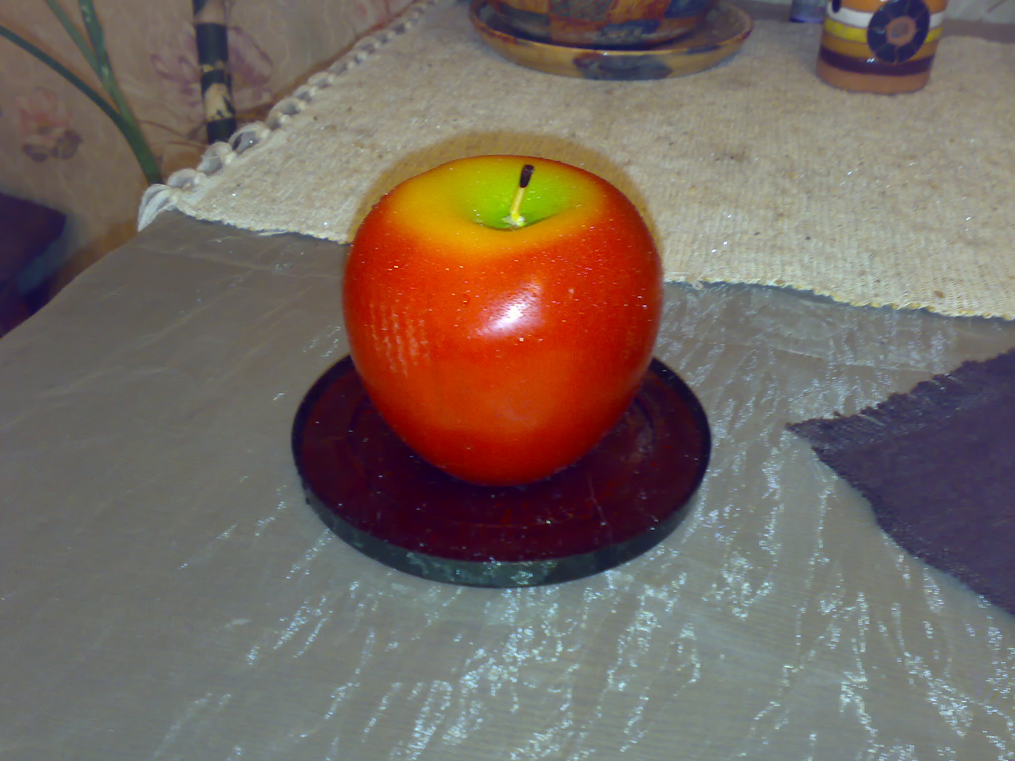 Если описать работу вспышки общими словами, то получится примерно следующая картина. HTC X7500 – определение вспышки к аппарату как таковое не применимо. Это банальный мощный источник света (фонарь), который освещает максимально возможную площадь. Canon PowerShot A510 – эталон среди тестируемых образцов. Вспышка хорошо выделяет объекты фотографии на темном фоне. Это придает фотографии объем. Вспышка довольно мощная, но при этом не слепит. Sony Ericsson K800 – самая безликая вспышка. Фотографии теряют четкость, при этом видимости работы вспышки практически нет. В K800 при активной вспышке появляется самое большое количество шумов и артефактов. Nokia N73 – смартфон с активной вспышкой странно «увел» все фотографии в синюю гамму. Если не брать в расчет эту особенность, то N73 наиболее близок к цифровому фотоаппарату. Остановимся на фотографии яблока.