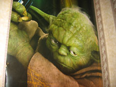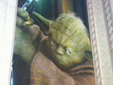 На этом примере все описанные особенности заметны наиболее очевидно. В фото X7500 яблоко и вся поверхность стола сильно выбелены светом, само яблоко потеряло форму от яркого освещения. Фотография Canon просто и наглядно демонстрирует пример качественной вспышки. В SE K800 яблоко освещено хорошо, чувствуется объем. Но при этом вся остальная часть фотографии испещрена артефактами. На снимке N73 яблоко освещено умеренно, но при этом фото слишком сильно искажено в цвете. Следующим примером возьмем магистра Йоду из Звездных Войн со световым мечом в руке.