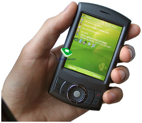 The trackball works in two modes – joystick-substitute and mouse. To confirm an action in either mode – press the trackball, or tap and hold for bringing up a context menu. While in the former mode, all you need to do is roll the ball in a desired direction, at that five-way is being emulated. The latter mode makes a mouse pointer appear on the screen that is managed with the help of the trackball. Naturally, this solution requires some time to be proven, just like any other innovation does. As for me, such approach to navigation will be nothing more, but all another way to show off, even though its implementation here is better than iPaq hx4700’s touchpad. The company is not afraid of experimenting, propose unique solutions, that is the thing to admire – nobody can avoid making mistakes, but those who don’t risk will never make it to the world’s top. Most people who see this device get interested in it outright, furthermore, they really want to get their hands on it and play around with the trackball.