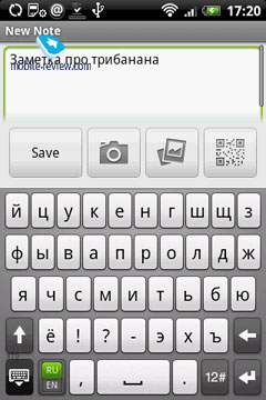Скачать клиент для создания заметок можно в Market (зовется 3banana). К заметкам можно добавлять сделанные фотографии или снимать на ходу, а также bar-коды, используется базовая разметка, если пользователь владеет ей, то его заметки будут выглядеть чуть лучше. Готовые заметки располагаются вертикальным списком, если есть картинка, она отображается справа от самого текста заметки. Есть поиск по нажатию соответствующей аппаратной клавиши (говорю о Hero). Для заметок добавляются теги (здесь они зовутся labels), если добавлять такой тег к каждой заметке, затем будет проще ориентироваться в них, можно ставить фильтрацию по labels.