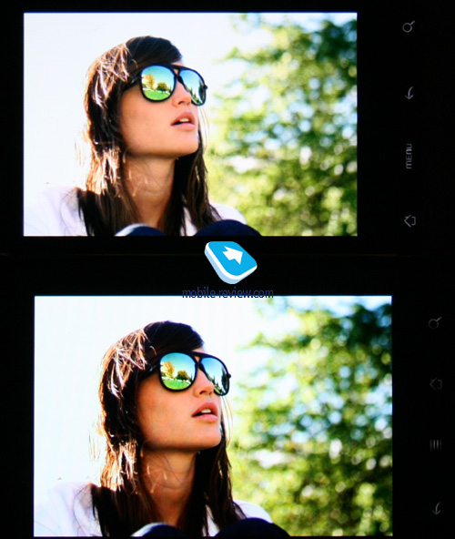 Дисплей HTC Legend находится под защитным стеклом (специальный полимер, аналогичный материал используется в HTC Desire и Google Nexus One). Благодаря использованию этого материала, поверхность экрана не царапается, да и следы, отпечатки пальцев на ней почти незаметны. ![]() На максимальном уровне яркости экран более-менее читаем на солнце, хотя и слепнет, на минимальном можно читать книги, хотя, на мой взгляд, яркость AMOLED дисплеев все-таки слишком высока даже на минимальном уровне для комфортного чтения книг. Ситуацию несколько спасает использование цветовой схемы с белым шрифтом и черным фоном. На снимках ниже вы можете видеть экран HTC Legend с минимальным уровнем подсветки (ползунок на нуле) и с максимальным. ![]() Максимальный уровень подсветки экрана ![]() и минимальный Для сравнения также приведены снимки с программой для чтения книг FBReader на экранах Legend и Hero, слева «легенда», справа- «герой»: ![]() ![]() Максимальный уровень подсветки экранов ![]() ![]() и минимальный Как и любой другой дисплей емкостного типа, экран в Legend отлично реагирует на нажатия пальцем, при помощи простого стилуса или предметов типа карандаша управлять аппаратом не получится. Функция автоматической регулировки уровня подсветки в смартфоне работает на удивление хорошо (ранее я всегда жаловался на нее), система адекватно меняет яркость экрана в соответствии с условиями освещения. Не буду говорить о том, насколько сравним экран Legend с Nexus One и насколько он ярче или не ярче дисплея в Hero, вы можете самостоятельно оценить качество экранов в сравнении, фотографии приведены ниже, как и оригиналы картинок: Сравнение экранов HTC Legend и HTC Hero (Legend сверху): ![]() ![]() ![]() ![]() ![]() ![]() ![]() ![]() ![]() Сравнение экранов HTC Legend и Google Nexus One (Legend сверху): ![]() ![]() ![]() ![]() ![]() ![]() ![]() ![]() ![]() КамераКоммуникатор оснащен 5 Мп камерой с автофокусом и светодиодной вспышкой. Глазок камеры расположен в верхней части задней стороны корпуса, вровень с его поверхностью, вокруг глазка идет металлический обод. Вспышка находится чуть ниже. ![]() В режиме видоискателя на экране отображается значок режимов работы вспышки и масштабирования, а также иконка перехода в галерею. Для вызова настроек нужно нажать ползунок слева или клавишу «меню» под экраном. Панель настроек появляется в левой части дисплея, отдельные параметры выбираются во всплывающих окнах. ![]() ![]() Для фото доступны следующие стандартные и широкоформатные (с соотношением сторон 3:2) разрешения: