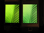 On the left - HTC Touch Diamond, on the right - Glofiish M800 It’s easy to see how differently these two displays render colors, but they seem equally sharp at that. Nevertheless, everything changes when you get a close-up on them: