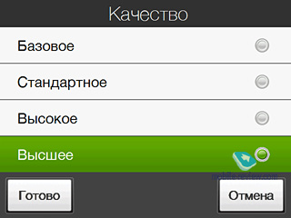 The Diamond’s display is tailored for finger-based navigation –gestures, swipes and taps. It’s pretty responsive at that – even slightest touches are picked up by the phone’s interface. Another positive about the Diamond is that managing it with the stylus is no longer a pain like it was the case with the HTC Touch Cruise. In this sense, the Touch Diamond’s display is a big improvement upon HTC’s previous offerings. Back to the table of contents >>> CameraThe HTC Touch Diamond utilizes a 3.2 Mpix autofocus-enabled CMOS camera. The camera lens is housed at the top of the phone’s underside. The bad news is that this hole collects a lot of dust, so you should better wipe it clean before shooting. ![]() The Diamond’s camera UI has gone though a major revamp in terms of looks and graphics, although as far as functionality is concerned it is not much different from that used in the HTC TyTN II and Touch Cruise. ![]() ![]() Visible on the Diamond’s viewfinder screen are only menu shortcuts, current zoom level and number of shots left. To bring up resolution settings and other options, tap the icon in the middle. ![]() Much like other HTC-branded phones, you can’t change the Diamond’s resolution settings from the menu just like that – the only option you have is a vague selection of codes that stand for certain resolutions. It’s not particularly convenient and there is no excuse as to why they couldn’t add a clear-cut list of available resolutions to pick from instead of this awkward array of codenames. ![]() ![]() ![]() ![]() Calling up settings is done by tapping the icon on the right. ![]() ![]() Photo There are five resolutions settings available: