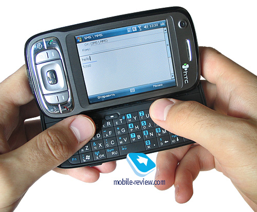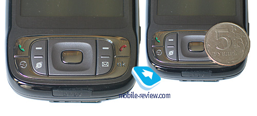 The model sure is a heavyweight, and this does impact its ergonomics in certain ways, specifically its ability to slip into breast pockets of shirts. Obviously, it will look out of place there solely because of its overweight. As regards other pockets you might throw it into, like jeans or trousers, these are all suitable places, however even there you might feel some discomfort, again, due to its weight. So the best place to have the TyTN II in – outerwear or the carryin case that comes packaged with the device. Among all other things, the communicator is quite palm-friendly. ![]() Topping the front fascia is an earpiece and sitting right next to it is a mini camera for videoconferencing, which can also be used for self-portraits, when you switch to it in the camera menu. Flanking the earpiece are two LED indicators. ![]() The one on the left glows in green or yellow notifying you of GSM- and UMTS- modules (green) activity, new messages or alerts (yellow). It also starts blinking in red when the battery level goes below 5%. The indicator on the right stands for wireless connectivity options status – blue obviously means Bluetooth, and green – WiFi, while its green lights will inform you about the activated GPS-module. ![]() ![]() Housed on the left-hand spine is a scroll wheel, which is a rarity among all new offerings. Before this moment, only the HTC TyTN and the HTC P3600 (Trinity) incorporated this control. The unit found on the TyTN II is reasonably tight and quite sensitive. With its help you can soar through lists and menus in the standby mode and adjust the volume level during calls. Tapping the wheel opens menu items and launches applications. Sitting below the wheel is the OK buttons, which does three things: while at the Today screen it opens the Start menu; while in some menu item or application, pressing the side-mounted OK key returns you to the Today screen; and while reading mail or handing the contact list, this button gets you one level back. This way, the HTC TyTN II can satisfy all your basic navigation needs (mail browsing, web-surfing, application management) with only two controls – the scroll wheel and the side-mounted button, which is very convenient in some cases, so you don’t have to pull out the styles every time you need to perform some basic actions, and nor do you need both hands for these purposes. ![]() ![]() Topping these controls is the voice dial button. The right-hand spine hosts the power key, looking at the bottom you will also find the dedicated camera button (tap it to focus and press it to make a shot), which is reasonably stiff. ![]() ![]() The bottom right corner is occupied by a tight stylus silo. The stylus’s handle has a ledge, which you can hook to pull it out of its nest. The stylus itself is a standard HTC fare, meaning that it is neither long nor short. So if you have already grown found of a long and thick stylus of some PDA, then the TyTN II’s unit will take some getting used to. ![]() ![]() The communicator’s base houses the ExtUSB socket for charging, data cable connections, as well as headsets or earphones (via a compatible adaptor). Not too far away from it is the microphone and the lanyard eyelet. Next to the microphone sits soft reset button slightly recessed into the casing. Looking up at the top slide you will find the memory expansion slot; the TyTN II has support for microSDHC cards (standard SD 2.0), in other words you can stick any memory card of the given type you can find today into it. ![]() The socket is covered by a flap, linked to the casing and rotates to make sure you can reach the socket itself. However its design leaves much to be desired – the fact is, one of its edges wear off, rubbing against the casing. Two weeks into use, the flap looks like it had better times in the past, especially if you tend to swap memory cards regularly, or just prefer using your card-reader for getting some data onto it. ![]() ![]() The TyTN II’s top is free of any controls. The SIM-card slot found in the HTC TyTN II is located in an even more unexpected place than the memory expansion socket. It is mounted right on the top slide – that is, on its underside, so if you want to take it out, all you need to do is open it up and slightly tilt the display. The socket itself is hidden under a small metal slab. ![]() ![]() ![]() Back to the table of contents >>> Controls, QWERTY-keyboardThe navigation cluster is located right below the display and comprises several controls. Its outer rim includes the pick/hand up keys and the Start menu buttons, as well as the OK key. And inside the cluster are two soft-keys, dedicated mail and browser buttons, while the centre is occupied by the five-way navigation key. ![]() ![]() All these buttons are properly sized and offer the user relatively deep and solid travel, which leads us to the conclusion that this cluster is a joy to handle. All keys apart from the navi-pad are evenly lit in white. ![]() ![]() The thumbboard features 41 keys – two them, the soft-keys are placed beneath the slid-open display when the communicator. They are quite fiddly to use due to their placement – your finger keeps running into the top half’s edge above them. That’s why for all actions involving these two keys you better use corresponding on-screen menus. The thumbboard itself is quite cramped – it even doesn’t use up the entire real estate of the bottom slide. Sitting on the left of the keyboard is the ambient light sensor, adjusting backlighting status (on/off) depending on the environment you are in. And right next to this sensor are Cap and Fn LED indicators. ![]() ![]() All keys in this thumbboard are rectangular in shape, the travel distance is relatively short and the truth is, the buttons are quite stiff, but generally you won’t experience much trouble handling this thumbboard. Typing up small texts, replying to messages – these are all good occasions to put the HTC TyTN II’
