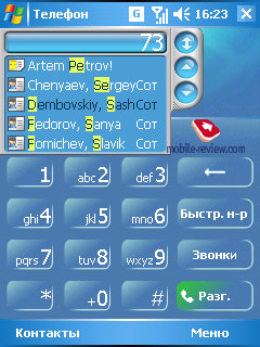 Smart Dialing. This buildup to the phone application adds contact search function, which is available in Windows Mobile for Smartphone. This function is implemented best of all in Windows Mobile for Smartphone compared with the analogues based on other operating systems.