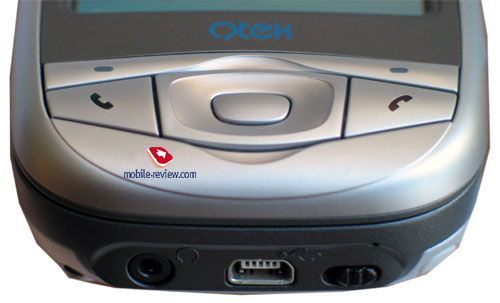 Every side has control elements, at the top there are s power button and a miniSD slot. For users the switch to miniSD slot from the popular SD/MMC means the change for the worse. The old user of Pocket PC will have to switch to another format, and the new user will get less memory card storage space (1 GB miniSD against 4GB SD). The miniSD slot should be considered a drawback, if you'll use memory cards capacious of more than 1GB.