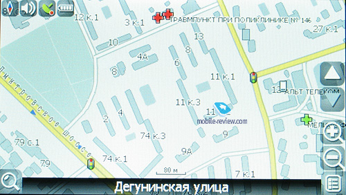 ПозиционированиеЧеткой линии позиционирования для этого навигатора нет, на официальном сайте Lexand он описан как «компактный автомобильный навигатор, который можно носить в кармане рубашки и в дамской сумочке», красивый, стильный и прочее, прочее. На деле это типичный автомобильный навигатор средних размеров, отличительной чертой которого является в первую очередь дизайн. ![]() Дизайн, элементы управленияНавигатор строгой формы с чуть сглаженными углами и плавными торцевыми переходами, выполнено устройство из глянцевого пластика черного цвета, по периметру лицевой стороны проходит вставка из пластика с эффектом хромированной поверхности, а поверхность экрана и пространство возле него покрыто слоем защитного пластика, так что экран не утоплен в корпус. ![]() Лицевая сторона не маркая, чего не сказать о глянце на обратной стороне, которая пачкается от малейшего прикосновения. Впрочем, это проблема любого глянцевого покрытия. ![]() Никаких нареканий к сборке навигатора нет, все элементы корпуса плотно подогнаны друг к другу, нигде ничего не скрипит и не люфтит. Что касается внешнего вида модели, выглядит Lexand ST-560 действительно свежо и даже стильно, конечно, не обошлось без копирования идей чего-то популярного, в данном случае дизайна iPhone, но в итоге навигатор от такого копирования только выигрывает. Если сравнить ST-560 по дизайну с большинством других навигаторов, представленных на рынке, то устройство от Lexand окажется одним из самых приятных в плане внешнего оформления. Габариты ST-560 (112.3x74x12.5 мм) типичные для модели с 4.3” экраном. Навигатор тонкий, но не настолько компактный, чтобы носить его в кармане одежды, тем более рубашки, как написано на сайте. Разъемы сосредоточены на левом ребре навигатора, здесь находится слот для карты памяти microSD, 2.5 мм разъем для наушников, разъем mini-USB и световой индикатор. ![]() На верхнем торце расположена единственная кнопка выключения навигатора или перевода его в спящий режим и паз для закрепления держателя. Использование в автомобиле, автомобильное креплениеДля установки в автомобиле в комплекте навигатора предусмотрено классическое крепление: автодержатель и кронштейн. Изменять положение навигатора в уже закрепленном виде просто, для этого достаточно расслабить единственное крепление на кронштейне, и после этого можно свободно вращать навигатор. Устанавливаем требуемое положение и снова фиксируем крепление. ![]() ![]() Кронштейн можно закрепить в автомобиле и больше не вынимать. Сам навигатор вынимается из крепления с некоторым усилием, так что нужно привыкать к такой схеме, первое время при попытках снять навигатор с крепления вся конструкция порой отрывается от стекла. ![]() ![]() ЭкранВ навигаторе установлен TFT-дисплей с разрешением 480x272 точки. Диагональ экрана составляет 4.3” (95x53,5 мм). По характеристикам дисплей совершенно стандартный: неплохие углы обзора по горизонтали, посредственные – по вертикали (искажения при малейшем наклоне вверх или вниз). Экран с матовым покрытием, за счет которого дисплей не так сильно слепнет на солнце, но картинка более тусклая, чем на экране без такого покрытия. Автономная работаВ аппарате установлен несъемный аккумулятор емкостью 900 мАч. Производитель заявляет до 4 часов работы от батареи. Мы провели стандартный тест на время работы, используя навигатор в автомоб