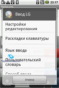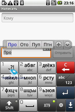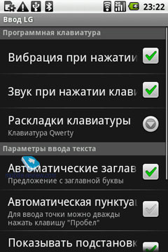 Ввод текстаСтандартная экранная клавиатура в LG Optimus копирует фирменную клавиатуру компании для всех сенсорников. И это плохо. Дело в том, что на рынке просто сенсорных телефонов нет компании HTC (один аппарат, HTC Smart, не считаю), которая на сегодняшний день предоставляет лучшую экранную клавиатуру для своих продуктов. Более того, в Маркет есть интересные варианты в чем-то лучше, чем клавиатура от HTC, в чем-то хуже, но клавиатуры от других производителей намного проще и неудобнее. В LG Optimus два типа клавиатур: полноформатная QWERTY и телефонная. Со второй все ясно - это просто набор из цифровой панели с клавишами и буквами на них, аналог обыкновенной клавиатуры любого телефона. Поэтому поговорим о первой клавиатуре, о QWERTY.