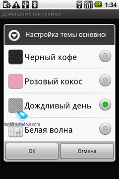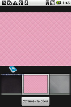 Среди картинок рабочего стола есть как стандартные для Android 1.6, так и стандартные для Android 2.1, а также фирменные от LG. Полный набор.