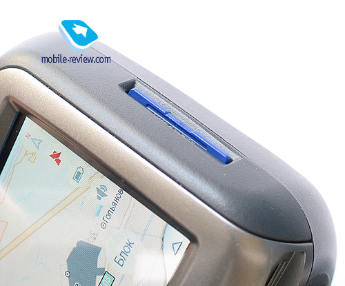 Нижний торец играет роль крепления. На самом торце расположен держатель для кронштейна. Последний идет в комплекте. Держатель закреплен на корпусе с помощью одного винта, при желании его можно просто убрать. Здесь же, под держателем, на самом корпусе можно обнаружить динамик. Громкости навигатора достаточно в автомобиле при движении, при условии, что нет посторонних источников звука, радио, музыки, слышно будет отлично. Если же слушать музыку, то разбирать комментарии навигатора уже несколько сложно, хотя всегда можно найти компромисс в громкости. Верхний торец пустой за исключением расположенного на нем разъема под внешнюю GPS-антенну. Разъем прикрыт резиновой заглушкой.