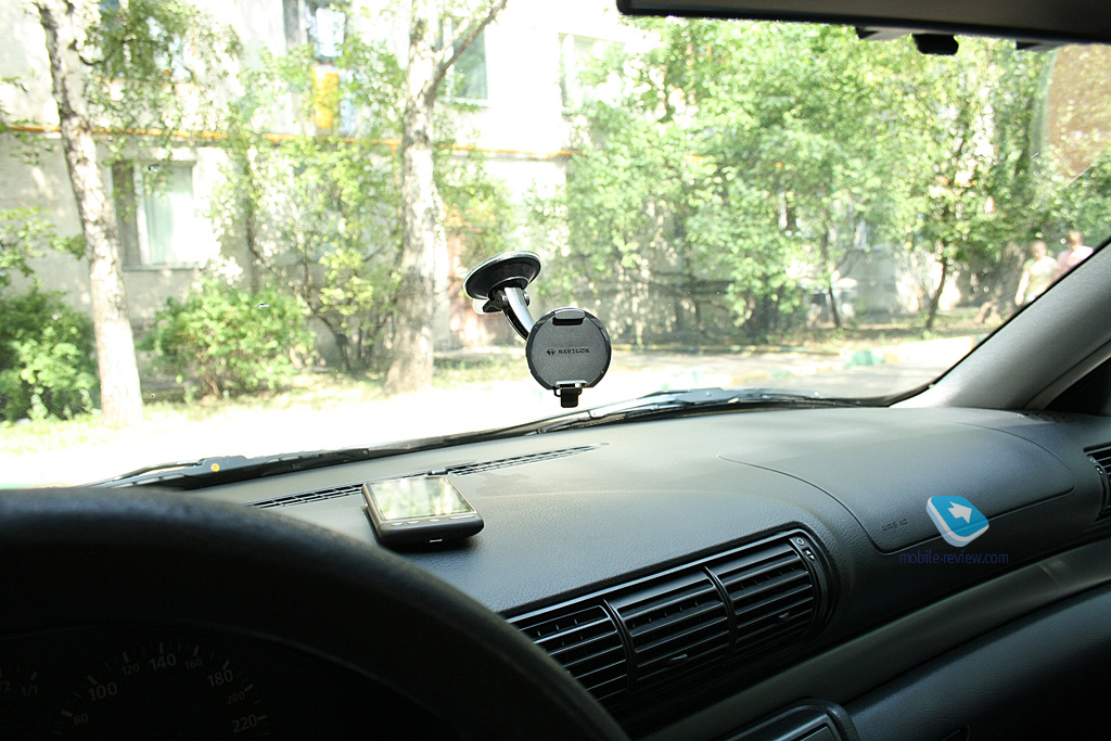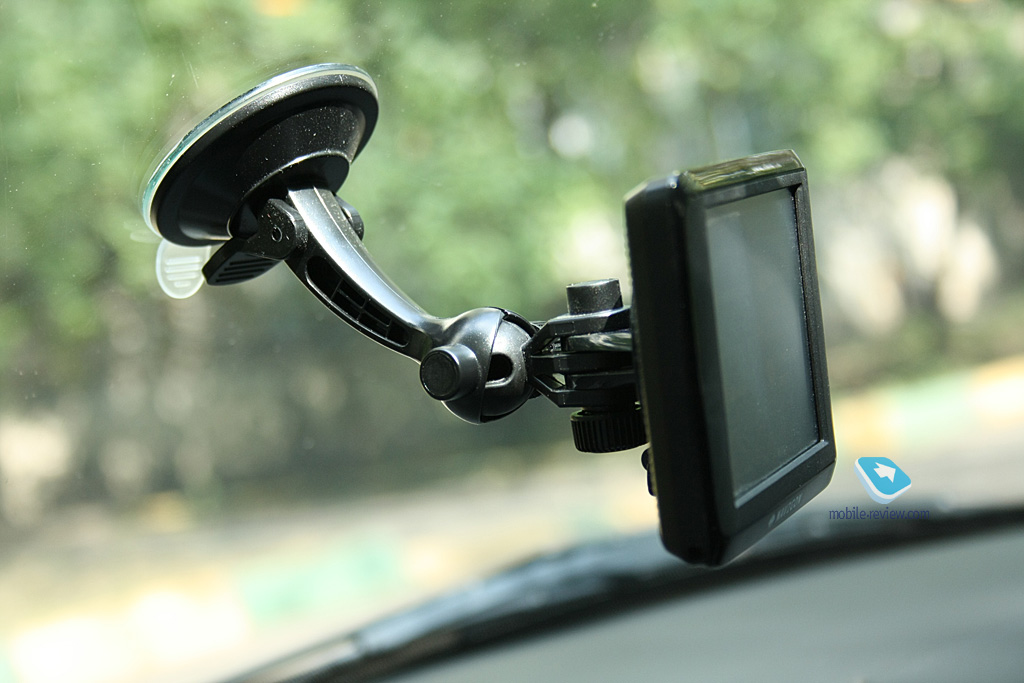 Один из лидеров среди производителей навигаторов в Европе компания Navigon в России пока не известна так широко, как, например, TomTom, Mio или Garmin. Скорее, пока компания соперничает с дивизионом отечественных брендов, которые продают схожую между собой продукцию. Тем не менее, после знакомства с навигатором Navigon 1400 я уверенно могу говорить, что этот производитель выступает в одной весовой категории с упомянутыми выше зубрами рынка. Дело за малым - найти покупателей и в России. В этом обзоре я хочу рассказать вам о недорогом навигаторе Navigon 1400. ![]() Дизайн, материалы корпусаПрименительно к модели Navigon 1400 можно сказать одно – простой. Навигатор максимально простой внешне: строгий корпус с немного скругленными переходами между плоскостями, пластик черного цвета, никаких декоративных элементов, блестяшек, звенелок и прочего. Меня такой дизайн подкупает. Казалось бы, недорогая штучка, но за счет разумного подхода к внешнему виду и материалам корпуса кажется, что вы держите в руках по-настоящему качественную и дорогую вещь. ![]() Навигатор выполнен из нескольких типов пластика. На лицевой стороне, по периметру экрана - матовый, чуть шероховатый материал, а по краю лицевой стороны пластик уже глянцевый, но его здесь совсем немного. Ребра, торцы и задняя сторона сделаны из матового пластика, задняя сторона ребристая, выглядит такое решение интересно. Габариты, сборкаПо размерам Navigon 1400 можно отнести к наиболее компактным автомобильным навигаторам, его габариты 96.5 x 72 x 14.5 мм, вес 128 грамм. Аппарат сравним по размерам с телефонами, при желании его можно использовать в пеших прогулках, размеры позволяют класть Navigon в любой карман одежды, к тому же в комплекте есть шнурок на руку. ![]() Качество сборки великолепное, придраться не к чему: все элементы и части корпуса плотно подогнаны друг к другу, нигде ничего не скрипит и не люфтит. В навигаторе нет откидывающихся частей, разных резиновых заглушек и тому подобных вещей, корпус практически монолитен. ![]() Единственное нарекание касается экрана. Он утоплен в корпус, так что по периметру поверхности дисплея постоянно скапливается пыль, а протирать её неудобно, приходится продувать или же просто привыкнуть к этой особенности. В остальном корпус Navigon 1400 немаркий. ![]() ![]() Элементы управления, разъемыВ навигаторе минимальный набор элементов, одна единственная кнопка на верхнем торце служит для включения и выключения устройства, а также перевода его в спящий режим. На правом ребре - слот для карты памяти microSD, на нижнем торце - разъем miniUSB для зарядки, утопленная в корпус клавиша перезагрузки и световой индикатор (горит во время зарядки, питания от прикуривателя), а в левом нижнем углу - ушко для крепления ремешка или шнурка на руку. ![]() ![]() ![]() ![]() Крепление в автомобилеКрепление в Navigon «правильное», то есть не такое, как во многих навигаторах от отечественных брендов, когда кронштейн и держатель таких размеров, что хочется плакать и брать топор, а аккуратный. В навигаторе держатель и кронштейн объединены, есть два винта, если ослабить один, можно регулировать угол поворота навигатора относительно крепления в горизонтальной оси. Второй винт отвечает за общую регулировку, если ослабить его, то можно вращать навигатор во всех плоскостях. ![]() ![]() ![]() Чтобы установить навигатор в креплении, достаточно просто вставить его в 