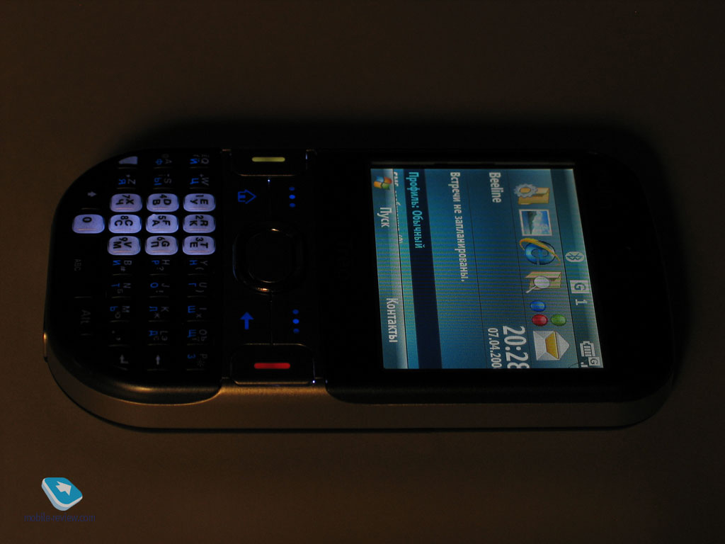 Как видите, Treo 500 выделяется на фоне конкурентов небольшой высотой, однако пожертвовать для уменьшения высоты пришлось толщиной корпуса. Смартфон от Palm самый толстый среди всех близких функционально клавиатурных смартфонов на Windows Mobile. ![]() ![]() ![]() ![]() ![]() Модель удобно носить в карманах одежды, а за счет округлой формы аппарат еще и приятно держать в руке. Во время разговоров проблем нет, смущает только тот факт, что пластик по всей поверхности корпуса гладкий и, как следствие, скользкий. Если у вас вспотеют руки, и вы возьмете устройство в это время, то держать его будет, возможно, неудобно или банально неприятно. ![]() ![]() Еще один минус гладкого пластика не так очевиден и практически не заметен. Пластик быстро загрязняется, покрывается отпечатками пальцев, разводами. Но благодаря серой расцветке корпуса эти следы не заметны нигде, кроме поверхности экрана, также защищенной слоем прозрачного пластика. Именно на дисплее хорошо видны все разводы и следы от пальцев. Проблема небольшая, если учесть что этим грешат все коммуникаторы, к тому же экран всегда можно протереть. ![]() Элементы управленияВ вопросе расположения и количества элементов управления Treo 500 немного удивляет. В модели есть исключительно необходимый минимум клавиш на ребрах и торцах, да и он выглядит скудно. Но начнем традиционно с лицевой стороны. В верхней части корпуса над дисплеем находится разговорный динамик. Справа от него расположен едва заметный в неактивном состоянии световой индикатор. Индикатор максимально прост, и его наличие вообще не до конца ясно. Он загорается красным, когда вы заряжаете устройство или подключаете к компьютеру, а также меняет цвет на зеленый, если зарядка завершена. На этом его функциональность оканчивается. Индикатор никак не демонстрирует полученное сообщение, пропущенные звонки. При включении Bluetooth также нет никакого оповещения или мигания, пускай и однократного. ![]() По этой причине нет смысла говорить о том, что разглядеть горящий индикатор на солнце сложно из-за его скрытости под слоем пластика. На улице он в любом случае не используется, а при зарядке смартфона дома смотреть на индикатор не требуется. На левом ребре располагается сдвоенная клавиша регулировки громкости и кнопка, активирующая при удерживании браузер Internet Explorer. Однократное нажатие этой клавиши не задействовано, и изменить назначение кнопки стандартными средствами нельзя. Кнопка регулировки громкости немного выступает над поверхностью корпуса, нажимать ее удобно, правда, во время разговора на ощупь сложно найти тонкий разделитель между клавишей увеличения и уменьшения громкости. В остальном проблем нет. ![]() ![]() Правое ребро пустое, нет даже стандартной для всех современных коммуникаторов и смартфонов клавиши включения камеры. На верхнем торце расположена кнопка выключения (удерживание) и вызова меню смены профиля. На нижнем торце находятся разъемы miniUSB для кабеля и зарядного устройства, а также 2.5 мм для гарнитуры. Здесь же располагается микрофон и ушко для крепления шнурка или ремешка на руку. ![]() ![]() Обратимся к задней стороне корпуса. В верхней ее части располагается площадка с модулем 2 Мп камеры и динамиком. Под крышкой – аккумулятор, он скрывает разъем для SIM-карты, а также карты памяти формата microSD. ![]() ![]() Управление, QWERTY-клавиатураБлок функциональных кл