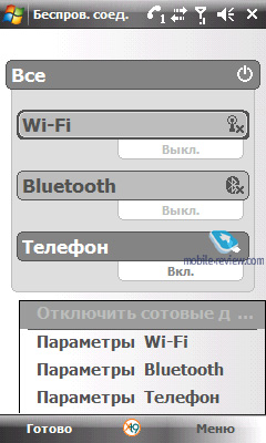 При подключении с помощью кабеля можно выбрать один из двух режимов работы: стандартный ActiveSync для синхронизации с компьютером или Mass Storage, чтобы вся доступная память устройства или карты памяти определилась в виде съемных дисков. ![]() Bluetooth версии 2.0+EDR, количество профилей сравнимо с другими коммуникаторами. Используется стек от Microsoft. Посмотрим, какие профили реализованы в коммуникаторе: