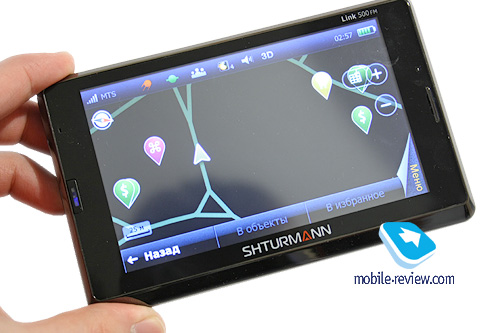 Очередной навигатор от бренда Shturmann с одноименной навигационной программой и хорошим функционалом. Поговорим о модели, рассмотрим ее плюсы и минусы, а также итоговое сочетание всех факторов вкупе с ценой устройства. ![]() Комплект поставкиКроме навигатора, держателя к нему и зарядного устройства в автомобиль в комплекте есть матерчатый чехол из серии тех, которые лучше бы в коробку даже не клали, а также SIM-карта от МТС со специальным тарифом «Команда Shturmann». Информацию о данном тарифе вы можете посмотреть здесь (загружаемый .PDF-файл). ![]() Дизайн, элементы управленияВнешне Shturmann Link 500 ничем не выделяется на фоне множества других навигаторов, матовый пластик черного цвета на задней стороне и торцах, глянцевый пластик «под хром» в качестве окантовки лицевой стороны. В общем, выглядит Link 500 FM просто и вполне приятно, спокойный внешний вид без всяких изысков и лишних финтифлюшек. ![]() Габариты устройства – 140x85x16,8 мм, вес 262 грамма. Как видите, устройство крупное и тяжелое. И если некоторые 5" навигаторы из-за их небольшого веса и тонкого корпуса еще можно назвать в какой-то степени пригодными для пешей навигации, то Link 500 – едва ли. ![]() На лицевой стороне корпуса находится экран, левее - сдвоенный световой индикатор, верхний светодиод горит красным во время зарядки или подключения к ПК, нижний мигает синим, когда навигатор корректно работает с включенным GSM-модулем. По сравнению с предыдущей моделью, Link 300, в новом навигаторе оба световых индикатора горят и мигают не так ярко, это хорошо. ![]() На верхнем торце расположен рычажок включения/выключения и блокировки устройства. ![]() На левом ребре - 3.5 мм мини-джек и разъем miniUSB для зарядки и подключения кабеля. Здесь же находится пенал для стилуса. Слоты для карты памяти формата microSD и для SIM-карты располагаются возле аккумулятора, доступ к ним можно получить, только вынув аккумулятор. ![]() В правой верхней части корпуса есть заглушка, которая очень напоминает стилус. Я вот ее, например, дернул первым делом и получил отвалившийся кусочек пластмассы. Не делайте так, если решите приобретать данный навигатор. ![]() ![]() Автомобильное креплениеДля автомобиля в комплекте предусмотрено стандартное крепление: автодержатель и кронштейн с вакуумной присоской. Как и в Link 300, здесь используется автомобильный держатель из полупрозрачного пластика. Выглядит это эффектно, да и с практической точки зрения удобно. Закрепленный на лобовом стекле держатель куда меньше заметен, чем классический из черной пластмассы. ![]() ![]() ![]() Кронштейн можно вращать относительно держателя с навигатором в любой плоскости, ослабив единственное крепление, это удобная схема, при которой вы можете за пару секунд настроить положение навигатора на лобовом стекле. После установки крепления на стекле нет необходимости его снимать. Снять и установить обратно в крепление навигатор можно за пару секунд. ![]() ![]() ![]() ЭкранВ аппарате установлен сенсорный TFT-дисплей с диагональю 5" и разрешением 800x480 точек, физические размеры экрана – 109x65 мм. Разрешение для навигатора нетипичное, на сегодняшний день устройств с WVGA-разрешением совсем немного, так что Shturmann Link 500 FM становится в один ряд с ними. Плюсы подобного разрешения – четкая картинка, приятная глазу, более комфортный в работе интерфейс программы навигации, опять же, из-за высокого качества картинки. Ми