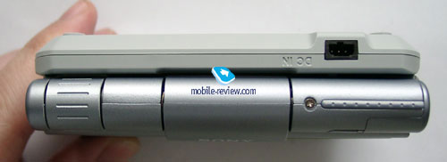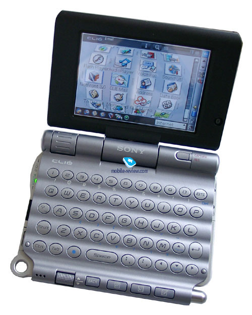 Справа от экрана расположены два индикатора работы bluetooth и Wi-Fi. Элементов управления, различных переключателей и индикаторов настолько много, что сложно решить с чего же начать их описывать. Начнем, пожалуй, с клавиатуры. Дорогие модели от Sony традиционно оснащаются встроенными QWERTY-клавиатурами. Карманные компьютеры UX серии не исключение. Если сравнивать со старыми моделями наладонников от Sony, то клавиатура претерпела положительные изменения. Она стала шире и удобнее: кнопки физически больше и разнесены дальше друг от друга, теперь их спокойно можно нажимать подушечками больших пальцев. И все это благодаря новому форм-фактору. Всего на клавиатуре расположено 50 кнопок (та часть клавиш на устройстве, которая становится недоступной в сложенном состоянии). Но по-прежнему работать комфортно с ними можно только двумя пальцами. Ни о какой печати «вслепую» десятью пальцами речи не идет. Итак, мы указали, что клавиатура стала удобнее, но сам принцип реализация встроенных клавиатур в Palm устройствах нуждается в улучшении. Например, вы набираете сообщение в ICQ при помощи клавиатуры, но чтобы его отправить необходимо воспользоваться стилусом. Для перемещения с одного поля на другое нужно опять применять стилус. Нажать «ОК» в любой программе? Опять необходим стилус... Неудобно каждый раз доставать его, держать в руке во время ввода с клавиатуры. Не говоря уже о том, что половина программ не реагирует на нажатие курсорных клавиш. Таким образом, теряется смысл клавиатурного ввода как альтернативы перьевому. Невольно всплывает сравнение с клавиатурным КПК Sharp, где практические любые действия можно осуществлять без стилуса. В этом нельзя винить Sony, так как этот недостаток присутствует во всех клавиатурных Palm, а первопричина кроется в самой операционной системе Palm и ее взаимодействием с клавиатурами. Специальные символы на клавиатуре нанесены синим цветом, они набираются при нажатой кнопке с изображением синей точки. Благодаря равномерной оранжевой подсветке, в темноте хорошо видны буквы и цифры на клавишах, но совершенно неразличимы специальные символы. При желании подсветку можно отключить. В сложенном состоянии на лицевой части КПК остаются доступными четыре аппаратных кнопки и колесико прокрутки. Про последнее стоит сказать пару слов. Во-первых, оно нетрадиционно располагается внизу, а не на привычной для Sony левой боковой поверхности. Пролистывать при помощи него книжки, держа КПК одной рукой, не очень удобно. Фактически ему остается только одно применение – функция перемещения по меню. Во-вторых, при нажатии на него происходит срабатывание функции «ввода». Но нажимать надо под определенным углом, первое время это непривычно.